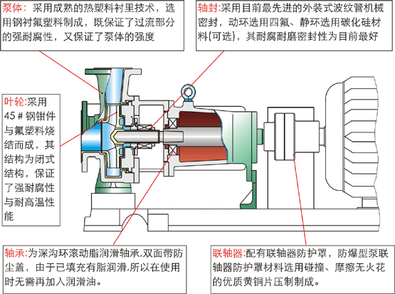 八、氟塑料離心泵結(jié)構(gòu)與材料: