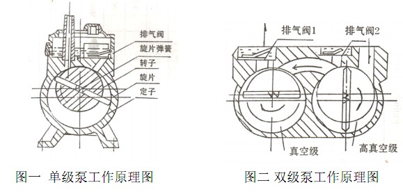旋片式真空泵多為中小型真空泵。旋片式真空泵有單級(jí)旋片真空泵和雙級(jí)真空泵兩種。所謂雙級(jí)旋片式真空泵,就是在結(jié)構(gòu)上將兩個(gè)單級(jí)泵串聯(lián)起來(lái)。一般多做成雙級(jí)的,以獲得較高的真空度。