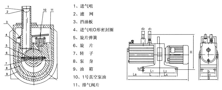直聯旋片式真空泵的結構圖及安裝尺寸圖