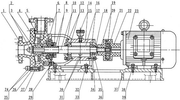 三、泵起動前先將液體灌滿泵體后開車,嚴禁無介質運轉和倒轉,否則泵體內因缺泛液體冷卻而損壞機械密封。