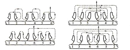 這種方案流道復雜,造價較高。當級數較多時,由于各級泄漏情況不同和各級葉輪輪轂直徑不相同,軸向力也不能完全平衡,往往還需采用輔助平衡裝置。
