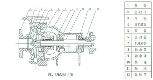 AFB、FB型不銹鋼耐腐蝕離心泵結(jié)構(gòu)說明與安裝結(jié)構(gòu)圖