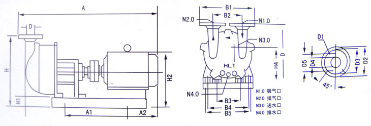 2BV7系列分體式水環真空泵外形示意圖