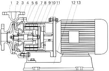 【CQB型不銹鋼磁力離心泵】結構圖: