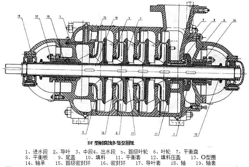 DF型耐腐蝕多級離心泵結(jié)構(gòu)圖: