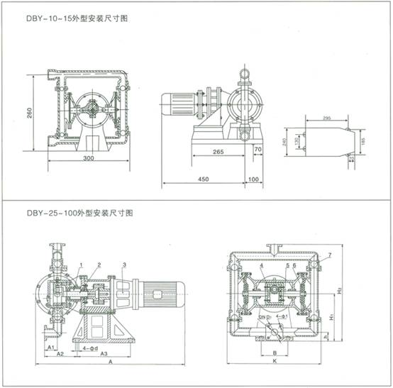 DBY型電動(dòng)隔膜泵結(jié)構(gòu)圖及安裝尺寸