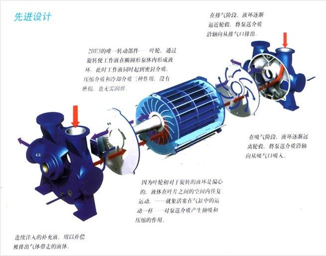 2BE3系列泵,自帶氣水分離器,多位置沒有排氣口,泵蓋設有排氣閥檢修窗口,葉輪與分配板間隙通過定位軸兩端壓蓋調整,安裝使用方便,操作簡單,便于維修。