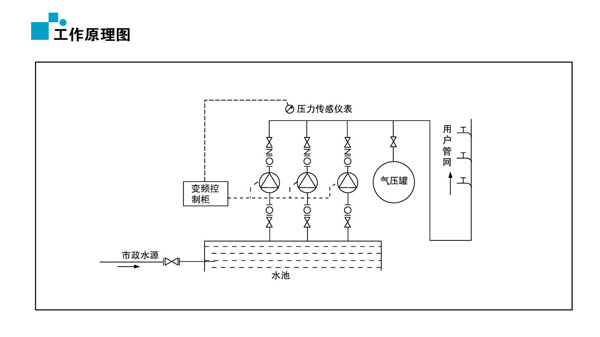 全自動(dòng)變頻調(diào)速恒壓供水設(shè)備工作原理圖