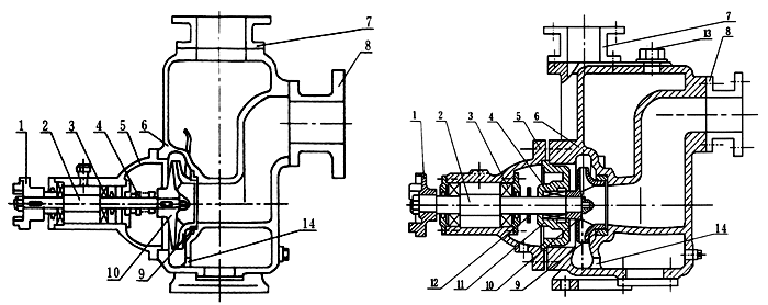 3.在寒冷季節(jié),應(yīng)將泵體內(nèi)的儲(chǔ)液和軸承體冷卻室內(nèi)的水放空,以防凍裂機(jī)件。