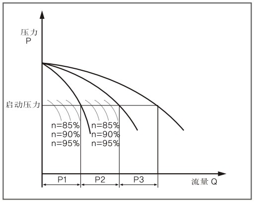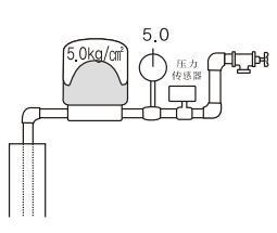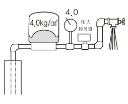 水泵剛運轉(zhuǎn)時,先給壓力罐補(bǔ)滿水,隨著壓力增大達(dá)到設(shè)定壓力后,水泵停止。