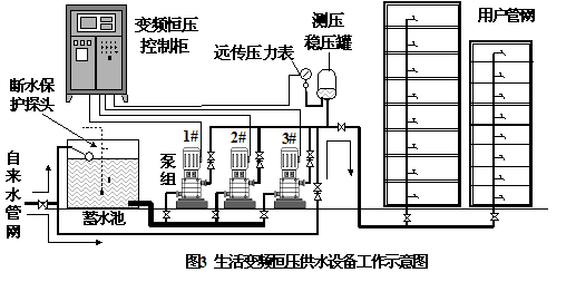 生活變頻恒壓供水設備組成及工作原理示意圖