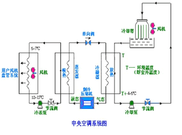 中央空調系統在現代企業及生活環境改善方面極為普遍,而且某此生活環境或生產工序中是屬必須的,即所謂人造環境,不僅是溫度的要求,還有濕度、潔凈度等。至所以要中央空調系統,目的是提高產品質量,提高人的舒適度,集中供冷供熱效率高,便管理,節省投資等原因,為此幾乎企業、高層商廈、商務大樓、會場、劇場、辦公室、圖書館、賓館、商場、超市、酒店、娛樂場、體育館等中大型建筑上都采用中央空調的,它是現代大型建筑物不可缺少的配套設施之一,電能的消耗非常之大,是用電大戶,幾乎占了用電量50%以上,日常開支費用很大。