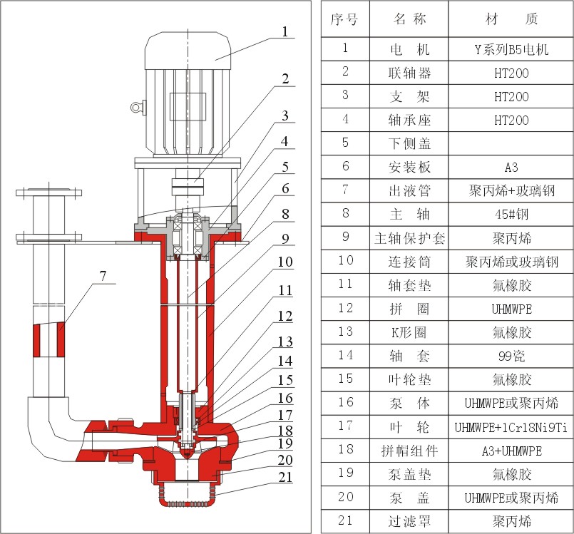 增強聚丙烯耐腐蝕液下泵結構示意圖