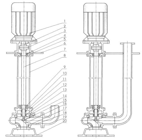 6、泵為立式結構,工作時泵體浸在液體中因而很容易起動,不存在排氣抽空問題,同時具有無泄漏等特點,液下深度可達7米。