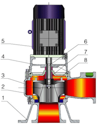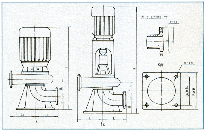 LW立式無阻塞排污泵是引進國外先進技術,通過吸收、轉化研制而成,各項性能指標均達到國家標準同類產(chǎn)品水平。由于采用獨特的單(雙)通道葉輪,排污能力強、能有效的通過泵口徑的5倍纖維物與直徑為泵口徑50%的固體顆粒,動密封采用兩組特殊材料的硬質合金機械密封裝置,材質為鑄鐵和不銹鋼。LW立式無阻塞排污泵為單吸蝸殼式泵,泵內(nèi)裝有無堵塞防纏繞型單(雙)大流道葉輪,具有很好的通過能力。該系列泵具有兩種結構形式,一是電機與泵直接同軸,二是采用聯(lián)軸器聯(lián)接,電機采用標準立式電機。其結構圖如下,每種結構形式具有兩種底座連接形式,一是進口水平吸入,具有轉角功能,可根據(jù)使用要求,進出口安放成0°、90°、180°、270°,便于管路連接,二是進口軸向吸入,便于立式安裝。